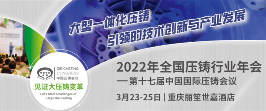 2022全國壓鑄年會(huì)—7月重慶與您共探大型一體化壓鑄