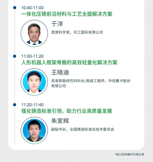 本次會議會議以“鋁”穩行遠,“鎂”啟新程為主題,旨在匯聚全球學術界、企業界、車廠等各方力量,以技術交流推動“鋁穩基業,鎂開新局”的產業格局,共同繪制輕量化時代的全球壓鑄產業新藍圖。誠邀壓鑄同仁蒞臨參會!