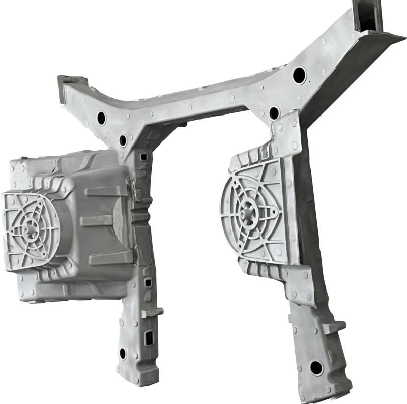 Brief Abstract of the Presentation 低壓鑄造作為一種鋁合金鑄件主要的成型方法在薄壁中空鋁合金副車架方面取得了不錯(cuò)的成績(jī),廣泛的應(yīng)用于各種新能源車型,低壓鑄造在大型薄壁件應(yīng)用取得的成功,也為一體化前機(jī)艙、后地板鑄件提供了新的成型思路。凱斯福聯(lián)合主機(jī)廠開(kāi)發(fā)了一款一體式低壓鑄造前機(jī)艙,其設(shè)計(jì)采用了中空結(jié)構(gòu),提高了產(chǎn)品的剛度,輕量化效果達(dá)到35%,工藝方面應(yīng)用計(jì)算機(jī)模擬,澆注系統(tǒng)合理布局,最終實(shí)現(xiàn)了鑄件批量生產(chǎn),T6熱處理后,力學(xué)性能高,并且基于合理的工裝設(shè)計(jì),變形量控制在2mm以內(nèi)。低壓鑄造產(chǎn)線和模具投資成本遠(yuǎn)低于高壓鑄造,為主機(jī)廠開(kāi)發(fā)一體化大鑄件提供了新的低成本工藝思路。