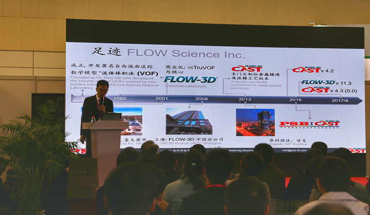 阿爾克森(蘇州)鑄造技術有限公司展臺展示 演講開始,首先開講的是清華大學的熊守美教授帶來的“高壓鑄造過程的智能化及模擬仿真”演講題目。高壓鑄造過程工藝的智能化是必然趨勢,鑄造模擬仿真(軟件)為智能化提供技術支持,降低壓鑄件的生產(chǎn)成本,提高壓鑄生產(chǎn)過程的效率。熊教授圍繞這個主題展開深度講解。 帕盛博(蘇州)軟件科技有限公司(FLOW-3D)楊歡應用工程師帶來的“尖端金屬鑄造數(shù)學模型”演講題目。帕盛博(蘇州)軟件科技有限公司系FLOW-3D CAST鑄造模擬分析軟件在中國的一級代理商,為客戶提供鑄造模擬分析解決方案及技術支援服務。楊歡先生以FLOW-3D CAST在高品質金屬鑄造的應用,為與會嘉賓講解該軟件為鑄造廠帶來的諸多益處。