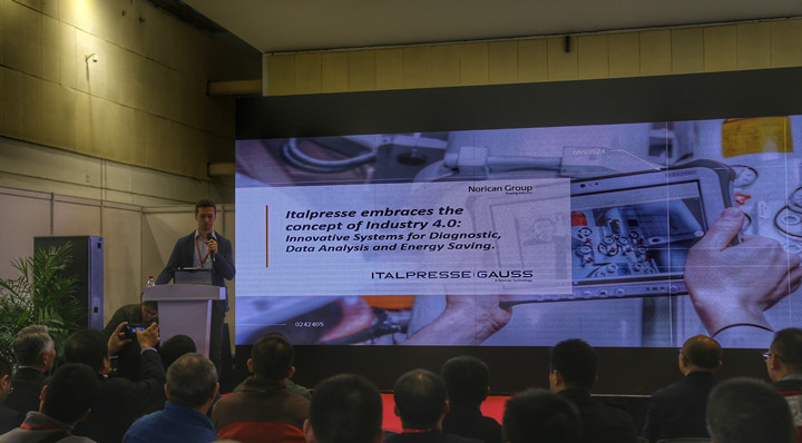 余永吉先生和與會嘉賓交流 意大利意特佩雷斯(Italpresse)的Mr.Zoppetti Marcello帶來“鑄造工業(yè)4.0”的報告。Italpresse基于“工業(yè)4.0”開發(fā)了全新的HME系統(tǒng)。HME是對于診斷、數(shù)據(jù)分析和節(jié)能創(chuàng)新的革新系統(tǒng),它是一個功能強大的智能工具用于機器的實時監(jiān)督和大量實時數(shù)據(jù)的存儲, 具有直觀和友好的用戶界面存儲和歷史的傳感器數(shù)據(jù)事件 將被用于診斷和認識復雜的報警情況的一個有價值的工具通過傳感器的變化仔細地回憶起機器運行的事件,為維修人員提供了解決故障的有力工具,減少了機器的停機時間Italpresse 4.0 技術的應用人機交互,數(shù)據(jù)存儲和連接, 分析和情報, 智能工廠=可持續(xù)發(fā)展工廠,高質量的維護。