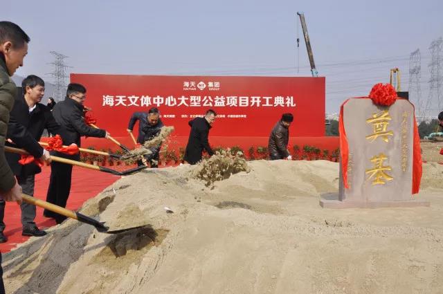 文體中心項(xiàng)目儀式 文體中心項(xiàng)目的啟動(dòng)始于2016年12月27日舉行的海天50周年慶典。慶典上海天集團(tuán)捐贈(zèng)5000萬元,并引領(lǐng)全球139家合作供應(yīng)商捐贈(zèng)800多萬元共同參與公益事業(yè),聚力北侖民生工程,由此啟動(dòng)了海天文體中心項(xiàng)目。 |