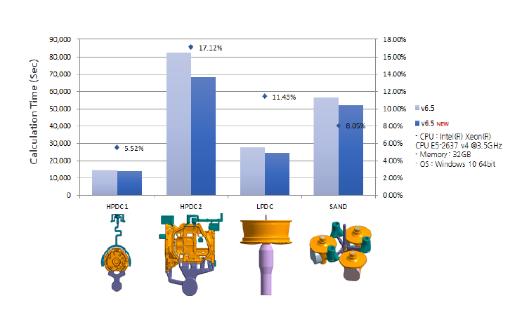 UPDATE – anySOLVER 分析速率提升 通過流動分析,熱/凝固分析運算法則的并行處理最優化,將流動凝固分析時間減少最多17%。