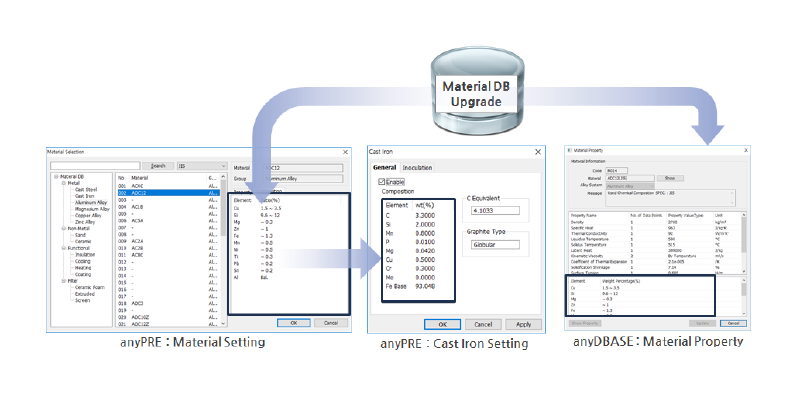 UPDATE – anyDBASE 添加化學組織數據 追加了200余種合金的組織信息,可以查看熱物性適用的代表性鑄造合金。新添加的組織信息在鑄鐵模塊中進行設置時可以被激活,并且可以在鑄鐵模塊中更改組織信息。