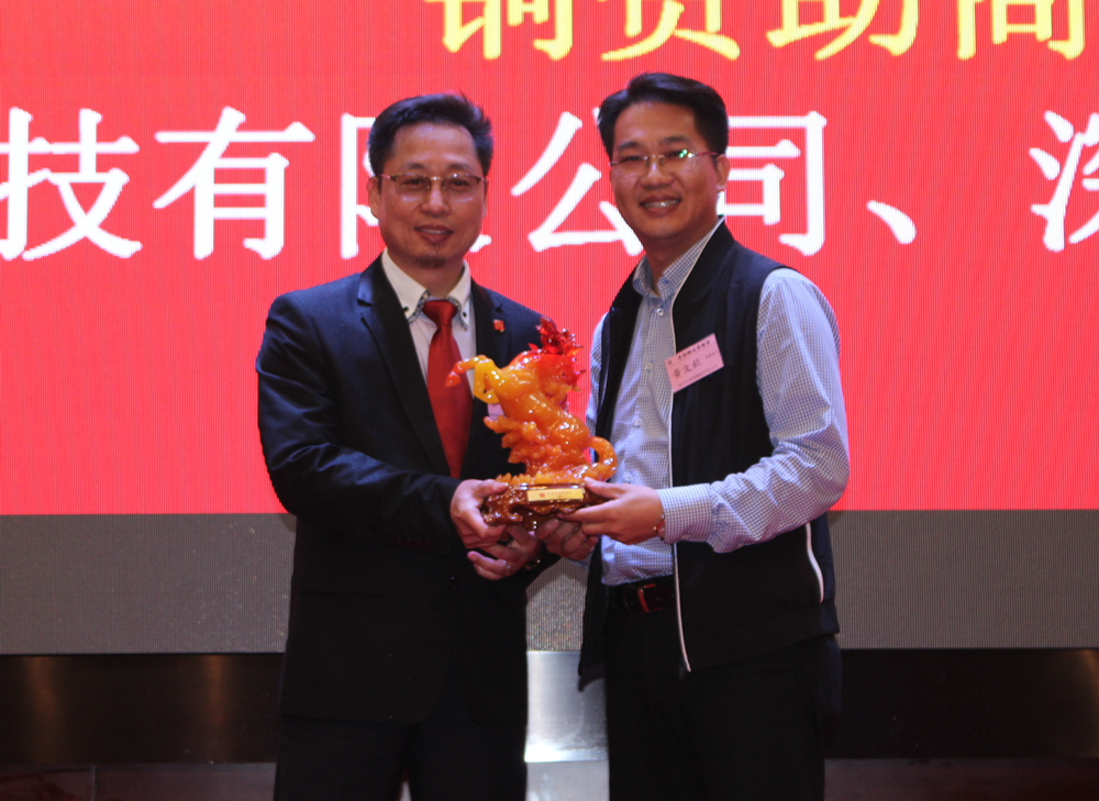中國鑄造協會會長張立波先生致辭 本屆晚會的成功籌辦,離不開會員企業的慷慨贊助。領導致辭畢,香港鑄造業總會會長蔡子芳先生分別為金牌贊助商順景園精密鑄造(深圳)有限公司、訊通展覽公司,銀牌贊助商樂豐制造廠有限公司、廣東華鑄模具科技有限公司,銅牌贊助商蘇州潤特新材料科技有限公司、深圳市奧德機械有限公司頒發吉祥禮品。