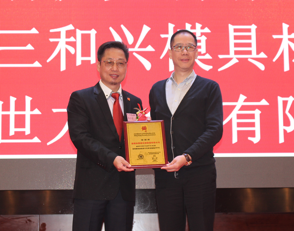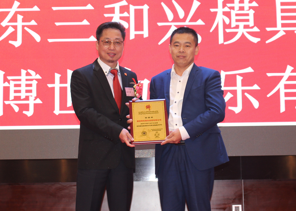 蔡子芳會長為銅牌贊助商頒發吉祥禮品 多年來,在各屆理事會和全體會員共同努力下,香港鑄造業總會各項工作不斷取得新成績,會員隊伍亦在不斷發展壯大。會上,蔡子芳會長為廣東華氏模具技術有限公司、東莞市斯優克潤滑油有限公司、廣東三和興模具材料科技有限公司、博世力士樂有限公司等會員頒贈證書盾牌。