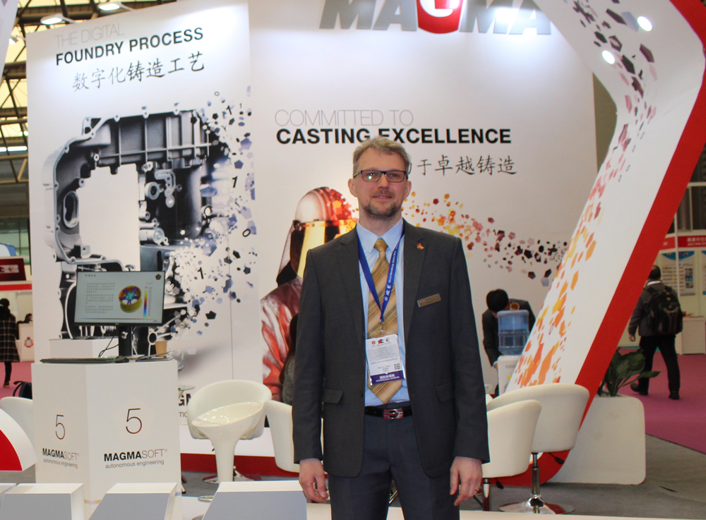 安保能展示的鋁合金熔煉設備模型 保定安保能專注于鋁合金熔煉技術及裝備研發(fā)30余年,通過不斷技術創(chuàng)新,掌握鋁合金熔煉設備的核心技術,并針對不同客戶的實際需求,開發(fā)出鋁液中遠距離輸送技術、高速凈化鋁液轉(zhuǎn)運包技術、鋁液在線凈化技術、高效鋁渣回收處理技術等;推出包括高效等速等溫鋁合金溶解爐組、再生鋁自動鋁鐵分離爐組、鋁合金熔煉爐、鋁液中遠距離運輸裝備等有技術含量的熔煉設備。 MAGMA中國:全方位推介新版本MAGMASOFT®5.4 邁格碼(蘇州)軟件科技有限公司(“MAGMA中國”),主要推介其目前最新版本的鑄造模擬分析軟件MAGMASOFT®5.4,希望以此來告訴用戶“未來鑄造將是怎樣的”。MAGMASOFT®5.4在高壓模塊里加入了料筒的模擬,它讓用戶更好地了解金屬液從給料、穩(wěn)料到壓射充型的整個過程中溫度、速度、卷氣和料筒變形等整個變化過程。同時也對噴涂、冷卻及熱平衡做了進一步的優(yōu)化,使各項參數(shù)更加貼近實際的鑄造過程。