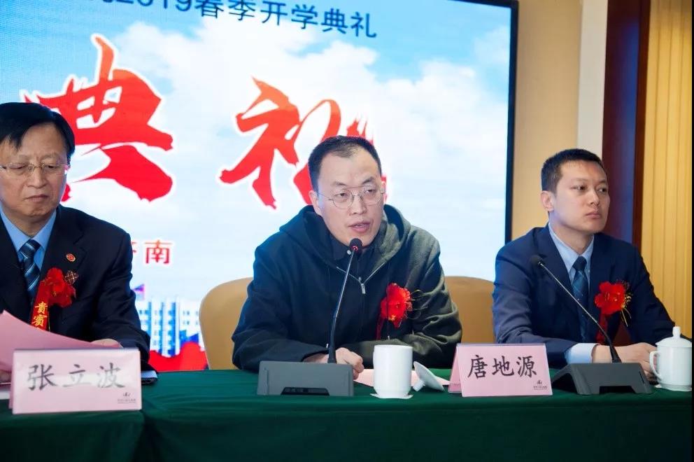 圣泉集團總裁唐地源在開學典禮上致辭 圣泉分院教師代表山大材料學院鄭洪亮教授和學生代表王翔宇分別作了發(fā)言。隨后,國開學院領導分別為教師代表和學生代表頒發(fā)了講師聘書和學生證。