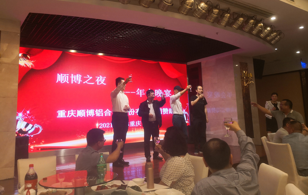 13日晚上,由重慶順博鋁合金股份有限公司贊助的年會晚宴在歡快的音樂聲中開始,晚宴上,重慶市機械工程學會鑄造分會龍思遠理事長對年會進行了總結,本次年會共收集論文112篇,主題報告13個,優秀論文宣講14篇,46個企業現場展示宣傳。內容涉及先進工藝以及鑄造過程管理經驗介紹、智能裝備以及環保設備推介,看到大家喜悅交談的情景,就知道收獲滿滿,意猶未盡。龍思遠理事長邀請各位代表明年再來,一如既往地支持每屆重慶鑄造年會的成功舉辦,再一次感謝各位光臨并宣布2021重慶市鑄造年會圓滿成功。 接著學會曹韓學副秘書長宣讀了年會優秀論文名單和論文組織獎名稱,協會湯渝生會長為優秀論文作者頒發了獲獎證書,學會龍思遠理事長為論文組織獎獲得者頒發了獎牌。接著湯渝生會長、立嘉展覽公司何芳部長、順博鋁合金公司喻林部長分別只祝酒詞,祝賀2021重慶市鑄造年會圓滿成功,最后湯渝生會長、龍思遠理事長、順博合金喻林部長以及中鑄協高巍專務上臺舉杯,向全體與會代表敬酒,感謝各位代表對2021重慶市鑄造年會的支持和關心,祝愿各與會代表身體健康,企業欣欣向榮、蓬勃發展、在2021年取得輝煌業績。