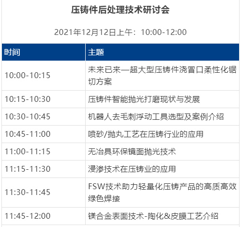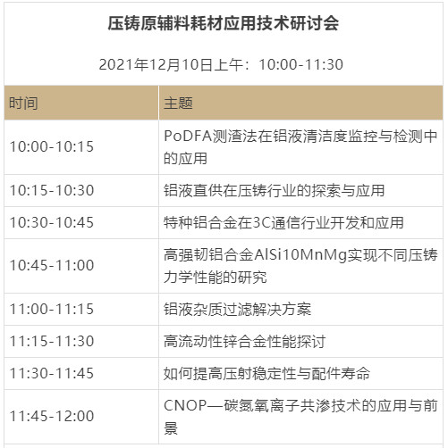 ![]() 第3屆東莞壓鑄節(jié) 12月10日-13日星期五-星期一 主辦方:中鑄科技 協(xié)辦方:華墨展覽 獨家合作媒體:壓鑄周刊 活動時間:2021年12月10日~13日 活動地點:廣東現(xiàn)代國際展覽中心7號館(東莞厚街) 費用:全程免費 活動背景 2019年中鑄科技主辦了壓鑄人自己的節(jié)日首屆“東莞壓鑄節(jié)”,并取得了圓滿成功。之后的2020年的第2屆“東莞壓鑄節(jié)”雖有疫情影響,但仍然更上一層樓。今年我們將繼續(xù)迎來第3屆“東莞壓鑄節(jié)”,活動更加豐富,規(guī)模更大! 2021年12月10日-13日,通過4天的時間,壓鑄節(jié)上將進行壓鑄行業(yè)新技術(shù)發(fā)布,壓鑄技術(shù)交流,壓鑄知識分享,鑄件門診,壓鑄知識禮包派發(fā)和供需對接等活動,力爭讓每位參加的壓鑄同仁學(xué)到知識,得到技術(shù),交到朋友,找到資源,滿載而歸。 專題研討會 活動安排 隨著壓鑄行業(yè)競爭的加劇,降本、增效、節(jié)能、環(huán)保、自動化等需求越來越迫切,壓鑄企業(yè)急需找到對應(yīng)的解決方案或提供方案的優(yōu)質(zhì)配套企業(yè),但是在信息大爆炸的時代,想快速而準(zhǔn)確的找到靠譜的信息對他們來說非常困難。 中鑄平臺經(jīng)過多年的積累,匯集了壓鑄行業(yè)內(nèi)的優(yōu)質(zhì)資源,充分掌握了行業(yè)最新技術(shù)動向,在東莞壓鑄節(jié)這個平臺,策劃了五個專題研討會,邀請近50家行業(yè)內(nèi)的優(yōu)質(zhì)企業(yè)和創(chuàng)新企業(yè),分享他們的新技術(shù)和實用解決方案。