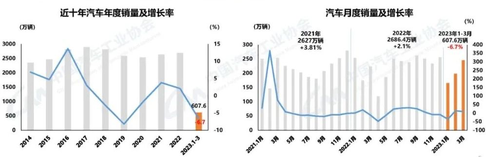 ![]() 近日(4月10日),中國汽車工業(yè)協(xié)會(簡稱“中汽協(xié)”)發(fā)布3月汽車行業(yè)經(jīng)濟(jì)情況。2023年3月,汽車產(chǎn)銷分別完成258.4萬輛和245.1萬輛,環(huán)比分別增長27.2%和24%,同比分別增長15.3%和9.7%。其中,新能源汽車產(chǎn)銷分別完成67.4萬輛和65.3萬輛,同比分別增長44.8%和34.8%,市場占有率達(dá)到26.6%。 中汽協(xié)表示,2022年的車市亮點(diǎn)在2023年一季度得以延續(xù)。新能源汽車在上年同期高基數(shù)基礎(chǔ)上繼續(xù)保持較快增長,市場占有率達(dá)到26.1%;汽車出口依然保持較高水平,一季度汽車整車出口同比增長70.6%,中國品牌占有率穩(wěn)步提升。 汽車產(chǎn)銷呈現(xiàn)較快增長 3月,汽車產(chǎn)銷分別完成258.4萬輛和245.1萬輛,環(huán)比分別增長27.2%和24%,同比分別增長15.3%和9.7%。2023年1-3月,汽車產(chǎn)銷分別完成621萬輛和607.6萬輛,同比分別下降4.3%和6.7%,較同期小幅下滑。整體來看,汽車市場國內(nèi)有效需求尚未得到完全釋放。