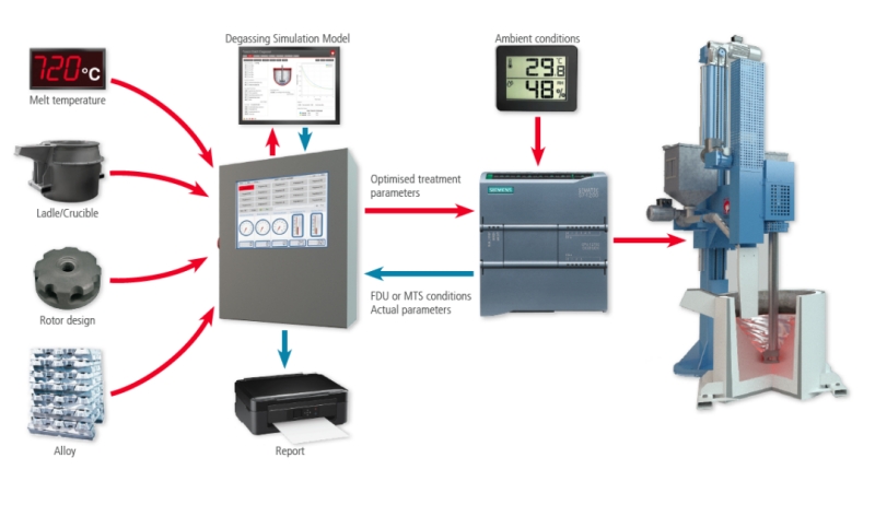04.創(chuàng)新產(chǎn)品優(yōu)勢 通過該創(chuàng)新技術(shù)的應(yīng)用,可提高金屬液處理效率,縮窄金屬液品質(zhì)波動范圍,減輕技術(shù)、技工人員的工作量。同時,各參數(shù)存儲在電腦中,方便后續(xù)處理、評估。 05.用戶案例 在歐洲某車輪鑄造廠,應(yīng)用該技術(shù)后金屬液的密度從2.48-2.55g/cc的變化區(qū)間縮窄至2.52-2.55g/cc; 在某鋁合金鑄造廠,將處理時間從15分鐘縮短至10分鐘,減少氬氣用量30%。 06.經(jīng)濟(jì)效益 用氣及其他耗材可減少10%-15%。 07.發(fā)展趨勢 金屬液處理自動化、數(shù)字化將滿足工業(yè)4.0的需求。 組織機(jī)構(gòu)