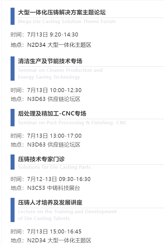 本屆會(huì)展活動(dòng)將持續(xù)12-14日三天,明日將有“大型一體化壓鑄解決方案主題論壇”、“清潔生產(chǎn)及節(jié)能技術(shù)專場”、“后處理及精加工-CNC專場”、“壓鑄人才培養(yǎng)及發(fā)展講座”、 “壓鑄技術(shù)專家門診”等多場同期活動(dòng)。歡迎廣大業(yè)界同仁蒞臨參觀交流!