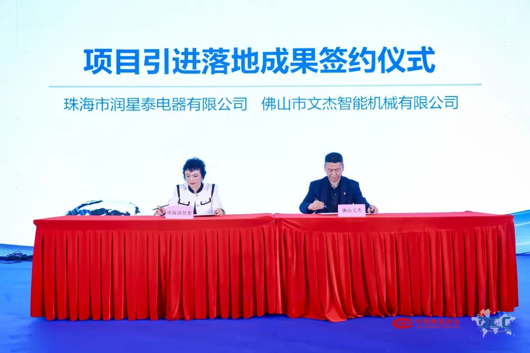 開幕式上,珠海市潤星泰電器有限公司與佛山市文杰智能機械有限公司還行了項目引進落地成果簽約儀式,與會代表共見了強企合作結出的成果。