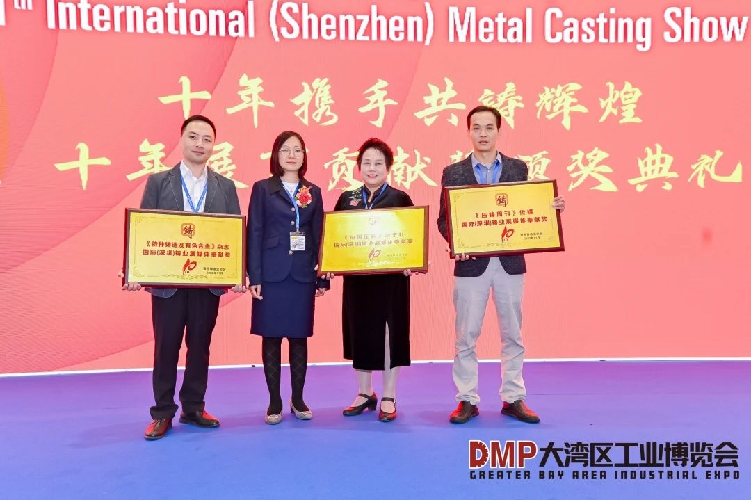 在開幕式上,為表彰優(yōu)秀展商、專業(yè)媒體、合作伙伴十余年來對(duì)展會(huì)所做的貢獻(xiàn),主辦方還頒發(fā)了“十年展商貢獻(xiàn)獎(jiǎng)”、“媒體貢獻(xiàn)獎(jiǎng)”、“最佳合作伙伴獎(jiǎng)”。力勁科技集團(tuán)、東莞捷勁機(jī)械設(shè)備有限公司、嘉瑞集團(tuán)、順景園精密鑄造(深圳)有限公司、安鎂金屬制品(深圳)有限公司、珠海市潤星泰電器有限公司、極品實(shí)業(yè)有限公司、海興集團(tuán)(國際)有限公司、廣東輝煌金屬制品有限公司、東莞市耀盛工業(yè)爐有限公司、深圳市奧德機(jī)械有限公司、東莞市高原爐業(yè)有限公司、東莞漢濤金屬制造有限公司、廣東啟新模具有限公司、金盟科技(深圳)有限公司等展商獲頒“十年展商貢獻(xiàn)獎(jiǎng)”,《壓鑄周刊》、《中國壓鑄》、《特種鑄造及有色合金》獲頒“媒體貢獻(xiàn)獎(jiǎng)”,訊通展覽公司獲頒“最佳合作伙伴獎(jiǎng)”。