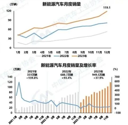 ![]() 1月11日,中國汽車工業協會(簡稱:中汽協會)發布2023年全年汽車工業產銷分析數據。2023年,我國汽車產銷分別完成3016.1萬輛和3009.4萬輛,同比增長11.6%和12%,創歷史新高,連續15年穩居全球第一。新能源汽車的發展尤為引人注目,不僅連續9年位居全球第一,更是引領全球汽車產業轉型的重要力量。 數據顯示,2023年新能源汽車產銷量分別達958.7萬輛和949.5萬輛,同比分別增長35.8%和37.9%,市場占有率達到31.6%。這一增長速度遠超傳統燃油車,充分體現了新能源汽車在市場上的強大競爭力。