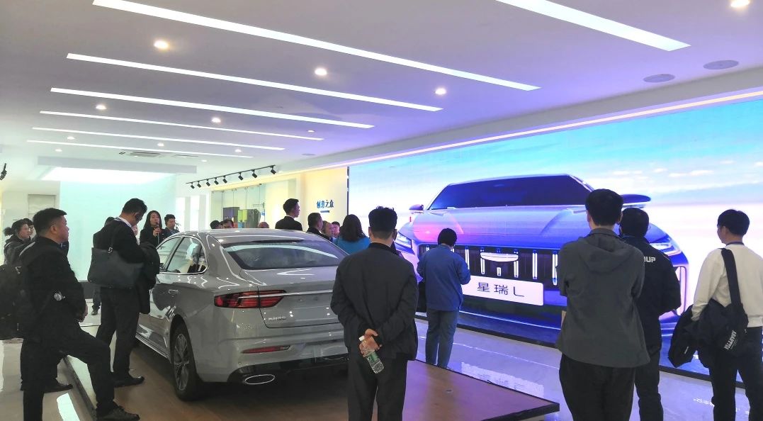 與會嘉賓參觀了展廳 → 焊裝車間 → 總裝車間。