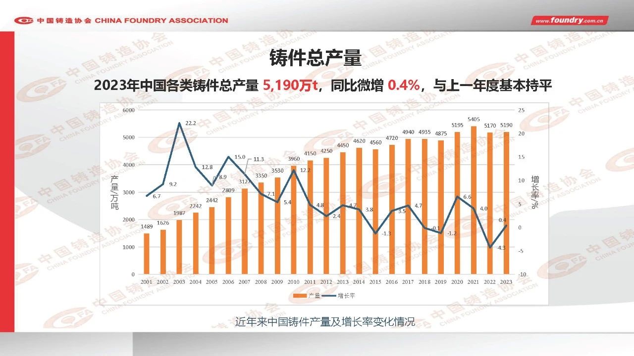![]() 2024年7月2日,中國(guó)鑄造協(xié)會(huì)于“第二十屆中國(guó)鑄造協(xié)會(huì)年會(huì)”期間,重磅發(fā)布了“2023年度中國(guó)鑄造行業(yè)數(shù)據(jù)”,中國(guó)鑄造協(xié)會(huì)執(zhí)行副會(huì)長(zhǎng)兼秘書(shū)長(zhǎng)王東生進(jìn)行了數(shù)據(jù)發(fā)布與詳細(xì)解讀。 圖片 以下為數(shù)據(jù)發(fā)布詳細(xì)內(nèi)容 現(xiàn)予分享