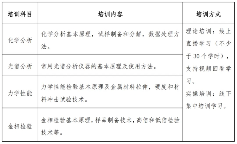 五、培訓及考核安排 考核分為理論考試及實際操作考試,理論考試采用線上答卷方式,實操考試采取線下實際操作方式。經(jīng)考核全部合格后,將由機械理化人員能評委統(tǒng)一頒發(fā)能力等級證書。 1.培訓時間: 9月13日-19日:線上理論培訓及考試 9月20日-22日:線下實操培訓及考試 2.培訓地點:中山市廣重鑄軋鋼有限公司(位于廣東省中山市黃圃鎮(zhèn)鯉魚嘴工業(yè)開發(fā)區(qū)) 3.線下實操培訓及考核安排如下: