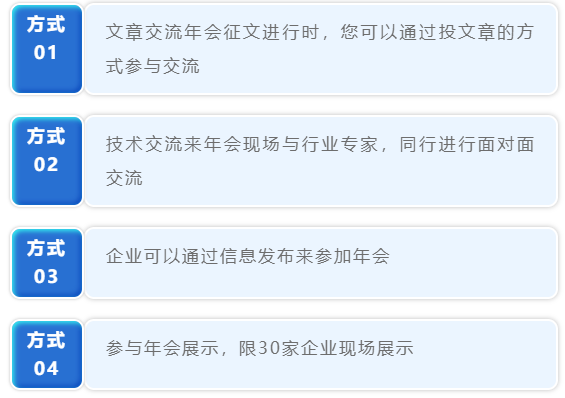 年會展示及贊助 展示、贊助:年會現場有少量展位,可供新產品、新技術展示,數量有限,先到先得。有志為行業發展提供支持或贊助的單位請聯系會務組。
