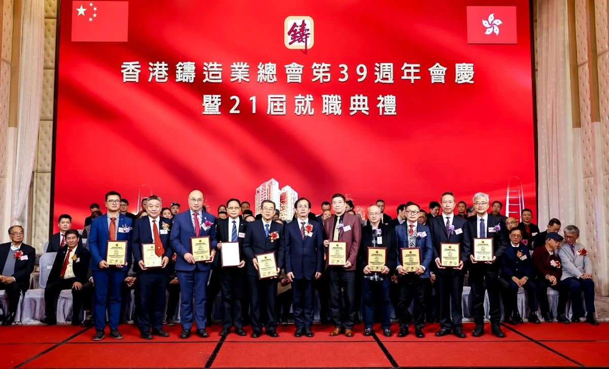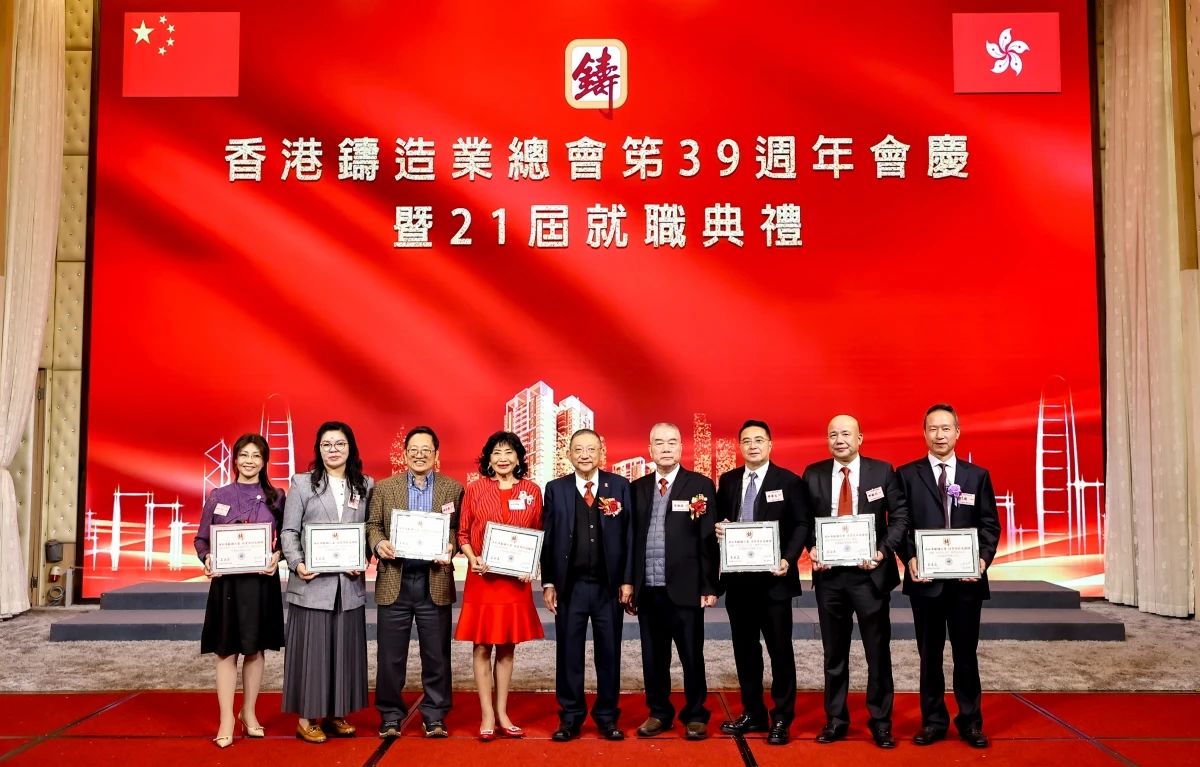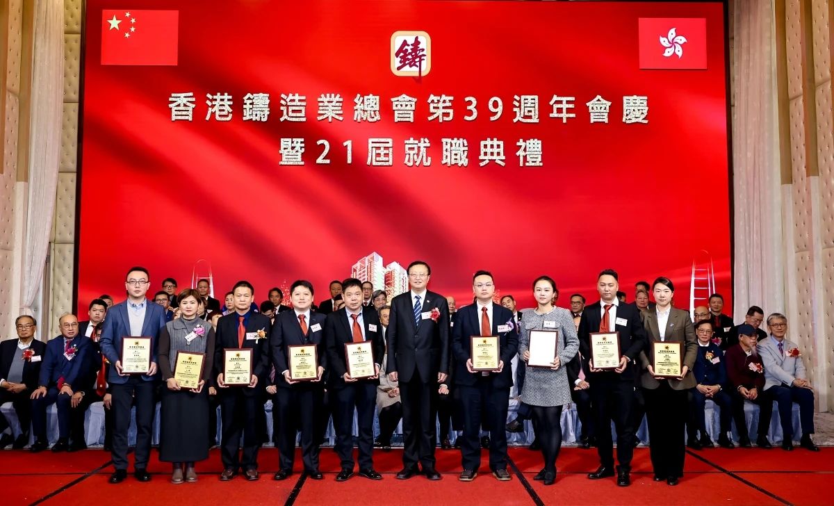 ![]() 璀璨香江,熠熠生輝。2024年12月16日,香港鑄造業(yè)總會第39周年會慶暨第21屆理事會架構(gòu)成員就職典禮,在香港九龍灣百樂金宴國際宴會廳隆重舉行。這一盛會不僅見證了香港鑄造業(yè)總會新一屆理事會架構(gòu)成員的正式就職,更彰顯了香港鑄造業(yè)的團(tuán)結(jié)與蓬勃活力。 香港商務(wù)及經(jīng)濟(jì)發(fā)展局副局長陳百里博士,中央人民政府駐香港特別行政區(qū)聯(lián)絡(luò)辦公室經(jīng)濟(jì)部副部長兼貿(mào)易處負(fù)責(zé)人周強先生,亞洲鑄造業(yè)聯(lián)合會當(dāng)值主席、中國機械工業(yè)聯(lián)合會副會長、中國鑄造協(xié)會會長張立波先生,中國機械工程學(xué)會鑄造分會副理事長、中國機械總院集團(tuán)沈陽鑄造研究所有限公司董事長謝華生先生,中國共產(chǎn)黨十八大、十九大代表、中國鑄造協(xié)會名譽會長、共享集團(tuán)股份有限公司董事長彭凡先生,以及來自全國鑄造行業(yè)的兄弟協(xié)會/學(xué)會領(lǐng)導(dǎo)、香港鑄造業(yè)總會會員企業(yè)代表、專業(yè)媒體記者等500余名嘉賓,共同見證了這一重要時刻。