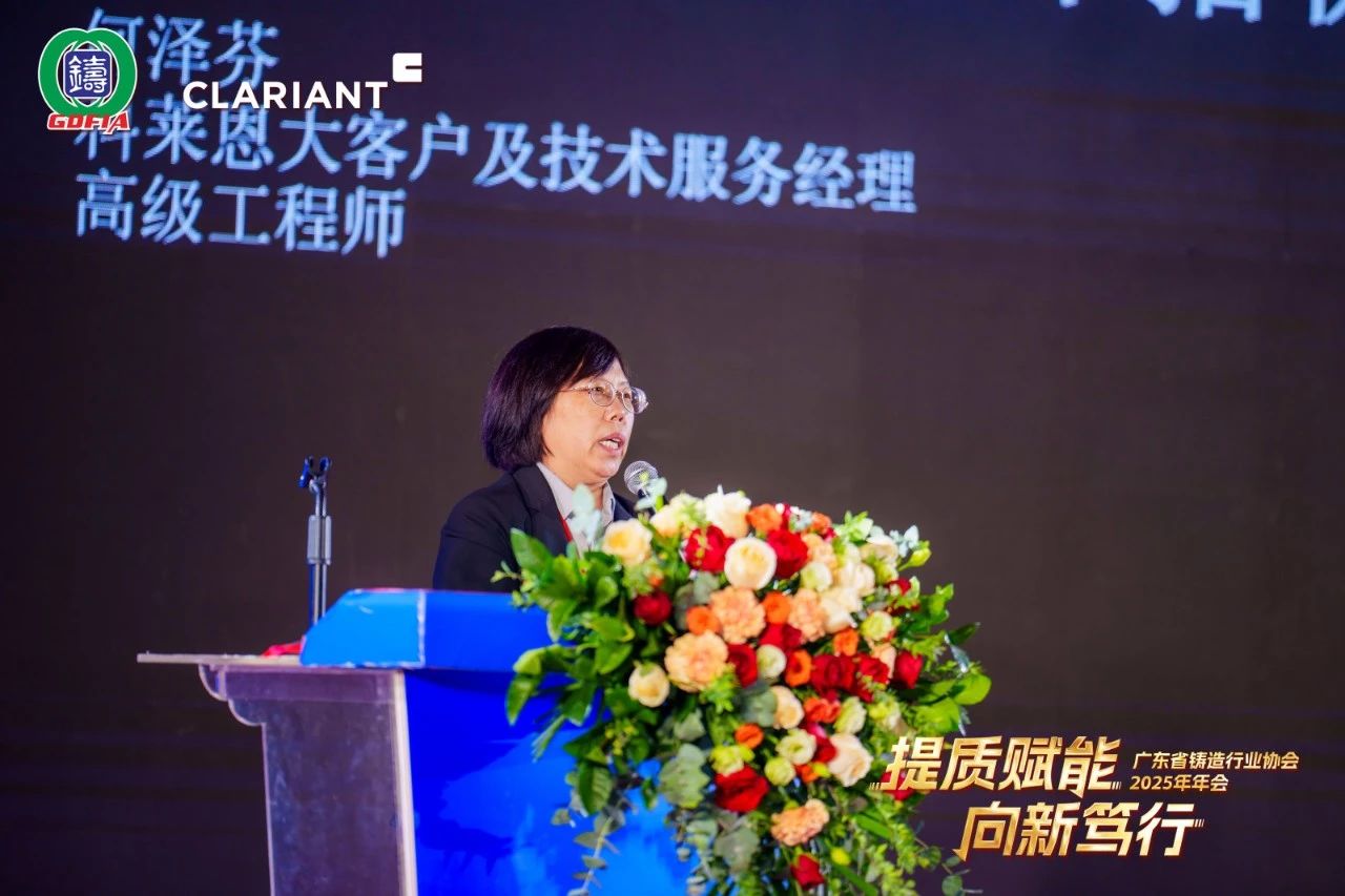 科萊恩化工科技(上海)有限公司大客戶及技術服務經理何澤芬女士以《濕型粘土砂降本的新舉措》為題作報告