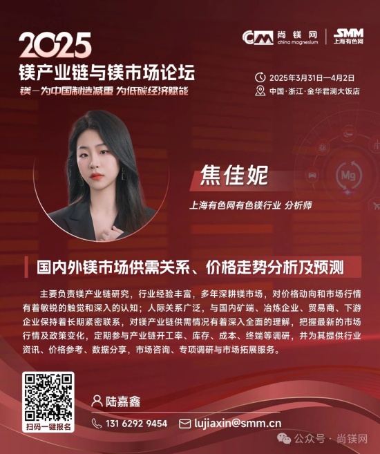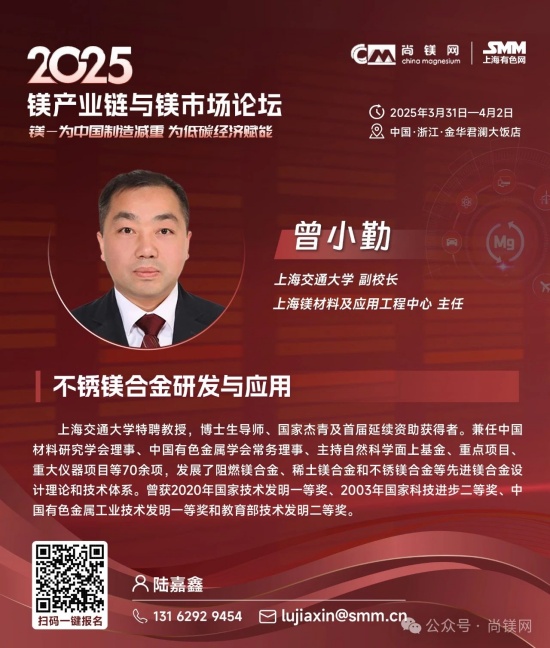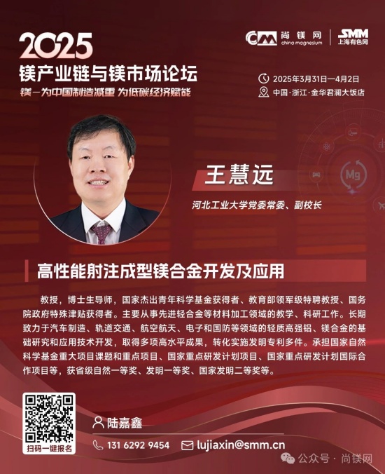 同時,考量鎂鋁比價關系及走勢及制訂材料選型替代戰略,還要更多的關注鋁及其他相關原材料市場的形勢。值得關注的是,2024年,受資源條件約束、環保及安全生產等因素影響,國內鋁土礦產量降幅進一步擴大。受此影響,國內氧化鋁企業加大進口鋁土礦使用量,鋁土礦進口再創新高,2024全年進口量達到1.56億噸。同時,鋁土礦進口價格不斷攀升,進口均價同比上漲8.4%,創近20年新高。因國產鋁土礦供應下降,國內鋁土礦資源對外依存度上升至68%,較上年提高6個百分點。而我國鎂的資源狀況極佳,不僅完全不需要進口鎂資源和鎂金屬,中國鎂產量占世界總產量的比例超過86%,具有明顯的資源優勢、產業優勢、供應優勢和價格優勢。 這一系列形勢應該能引發產業界進一步思考,在原材料風險評估和材料選擇時,要更加關注資源和原材料供應的可靠性及供應鏈的安全性問題,要更多的從戰略高度和商業角度考慮如金屬鎂這樣的國內資源保證條件好的資源與材料的應用,加大對此類產業和產業鏈的支持力度,從戰略高度增強信任,構建新型商業合作關系,構建更加穩固可靠的新型和優勢產業鏈。 中央經濟工作會議突出強調:“要更好統籌發展和安全,必須統籌好總供給和總需求的關系,暢通國民經濟循環。必須統籌好培育新動能和更新舊動能的關系,因地制宜發展新質生產力。必須統籌好做優增量和盤活存量的關系,全面提高資源配置效率。必須統籌好提升質量和做大總量的關系,夯實中國式現代化的物質基礎。” 結合當前鎂行業及鎂市場形勢,我們認為,在2025年要重點抓好金屬鎂的規模化應用這一大課題,這不僅是有效解決當前行業困境的當務之急,也是貫徹落實中央經濟工作會議精神,統籌發展和安全、提高資源配置效率、擴大內需,更新舊動能和培育新動能的重要行動措施。金屬鎂作為輕量化結構材料和功能材料,在推動綠色低碳、高質量發展中將發揮重要作用,展現更大作為。目前,開展這項工作的環境和條件已經基本具備,重點和方向也已經明晰,所要做的就是凝心聚力,努力實踐了! 我們相信,鎂市場需要決定性力量,決定性力量還要來自于市場。在這一關鍵時刻和重要節點,尚鎂網與上海有色網SMM在國家鎂中心、中國材料研究學會鎂合金分會等單位及產業鏈骨干企業的大力支持下,將于今年3月31日-4月2日在浙江金華再次舉辦“鎂產業鏈與鎂市場論壇”,本次論壇的主題為“鎂—為中國制造減重,為低碳經濟賦能”。主辦方誠邀鎂產業鏈、鋁產業鏈同仁共聚浙江金華,共同探討鎂材料在推動中國制造輕量化、促進低碳經濟發展方面的重要作用。我們相信,通過本次論壇的交流與探討,將進一步推動鎂材料在更多領域的應用,支持在金華打造“鎂好蘭溪科創地”,在春暖花開之際,掀起新一輪鎂產業和鎂市場發展的澎湃春潮。為中國制造減重,為低碳經濟賦能。 2025鎂產業鏈與鎂市場論壇一經啟動,首批鎂產業鏈終端用戶及品牌商已經注冊參會,包括:賽力斯汽車、中國一汽、長安汽車、東風汽車、上汽集團、比亞迪、吉利汽車、廣汽集團、北汽集團、通用汽車、蔚來汽車、哪吒汽車、理想汽車、小米汽車、極氪汽車、陜汽集團、零跑汽車、奧迪汽車、質子汽車、捷豹路虎、大眾汽車、小鵬汽車、智己汽車、深藍汽車、華為終端、華為海思光電子、華碩科技、傳音控股、惠普公司、愛立信、雅迪科技、納恩博(9號公司)、中車集團、中航工業、瑞美熱水器(Rheem)、英洛華康復器材、圣雪休閑用品等知名企業......下游用戶對鎂及鎂合金關注度明顯提高。 期待您的光臨! 2025鎂產業鏈與鎂市場(金華·蘭溪)論壇 CHINA MAGNESIUM FORUM 2025 2025年3月31日—4月2日 地點:浙江省金華市 特別支持 國家鎂合金材料工程技術研究中心 中國材料研究學會鎂合金分會 國際鎂業協會 聯合主辦 尚鎂網 上海有色網SMM 特別協辦 蘭溪市鎂材料研究院 協辦單位 物產中大(浙江)產業投資有限公司 物產中大柒鑫合金材料有限公司 寧波保稅區海天智勝金屬成型設備有限公司 支持單位 青陽縣人民政府 山西瑞格金屬新材料有限公司 山西銀光華盛鎂業股份有限公司 山西八達鎂業有限公司 河南明鎂鎂業科技有限公司 勵展博覽集團 重慶材料學會...... 論壇主題 為中國制造減重 為低碳經濟賦能 已確認的部分演講嘉賓