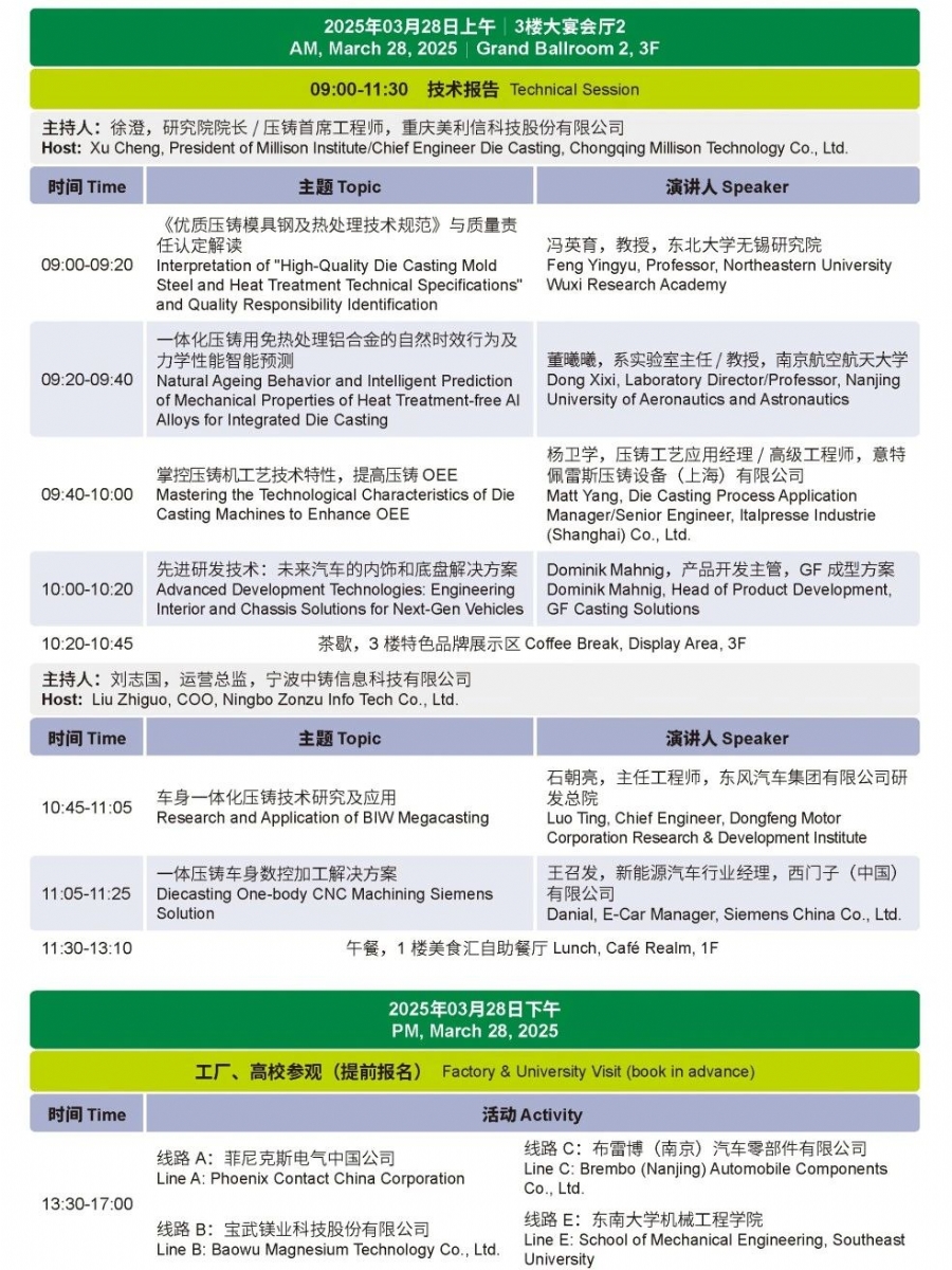 主持人:彭立明,主席,世界鑄造組織壓鑄委員會;教授,上海交通大學 主會場:技術報告