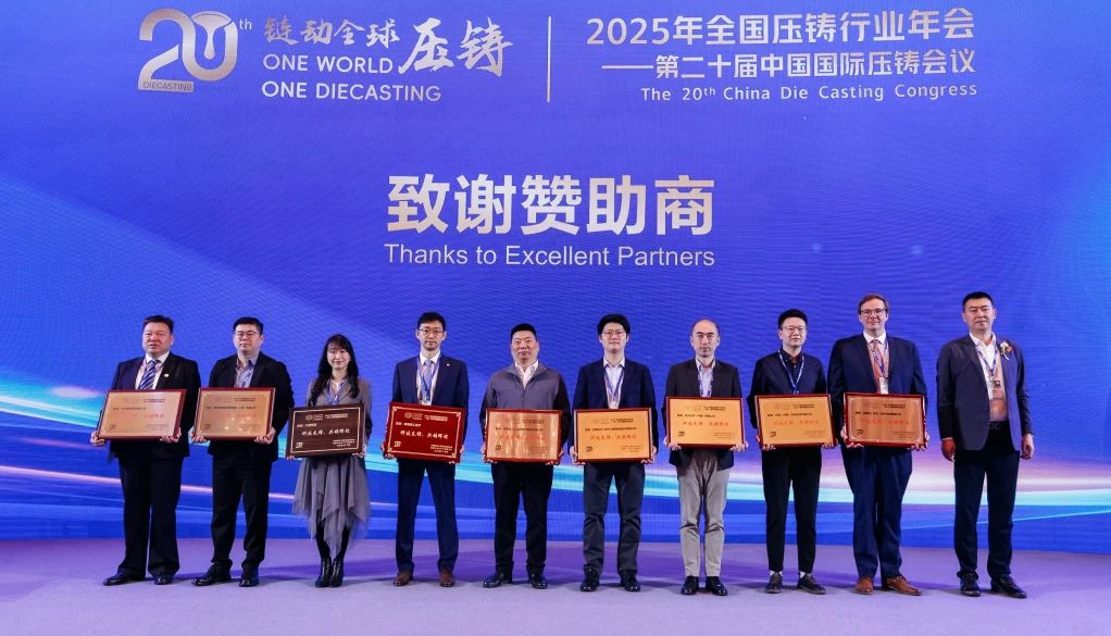優秀合作伙伴致謝 壓鑄行業的蓬勃發展,離不開每一位合作伙伴的傾力支持。他們以真誠的態度積極的行動,為行業發展注入強勁動力。在此次年會開幕式上,主辦方為此次活動贊助單位舉行降重的致謝頒獎儀式,由中國機械工程學會鑄造分會副理事長,一汽鑄造有限公司黨委書記、董事長楊澤坤先生為其頒獎,感謝各方對行業發展誠摯的付出與卓越的貢獻。
