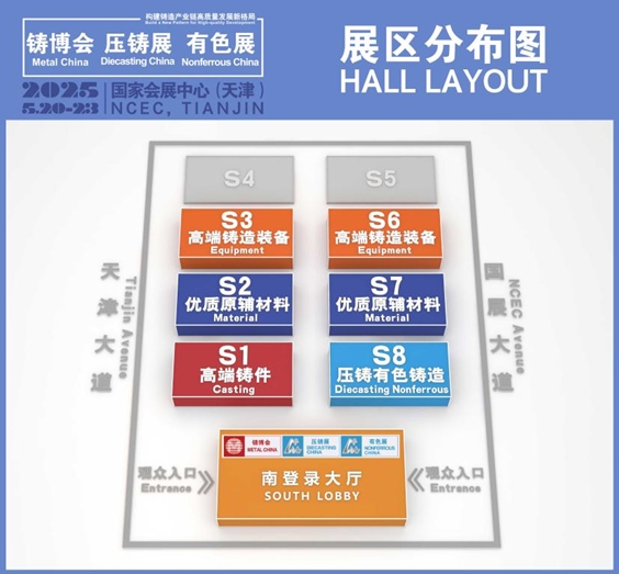 作為全球鑄造行業的重要展會,秉承行業引領、創新發展、服務行業的宗旨,第二十三屆中國國際鑄造博覽會(METAL CHINA)、第十八屆中國國際壓鑄工業展覽會(DIECASTING CHINA)、第十八屆國際有色及特種鑄造展覽會(NONFERROUS CHINA)將于2025年5月20-23日在超大型國家級展館——國家會展中心(天津)盛大舉辦。展會涵蓋6大主題展館,8萬平米展出面積,預計將有1000余家參展商同臺亮相。