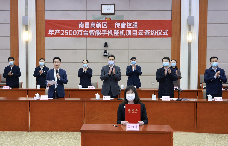 3月29日,南昌高新區和深圳傳音控股股份有限公司以視頻連線的方式舉行了傳音控股智能手機整機項目云簽約活動。