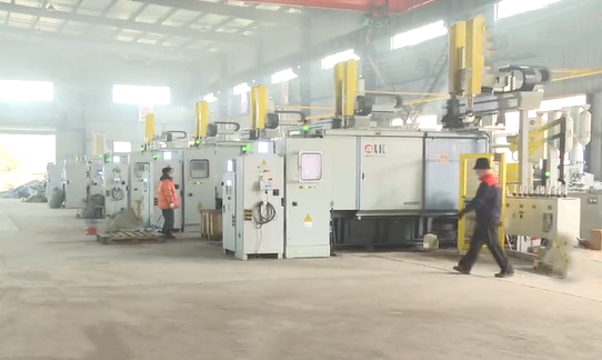 在日晉壓鑄的生產車間,壓鑄設備已實現較高的自動化生產,菱沼壓鑄機配置自動給料系統、自動噴霧系統、壓鑄件毛坯傳送帶、水口料返熔輸送系統等,組成高度自動化壓鑄及去毛刺生產線。
