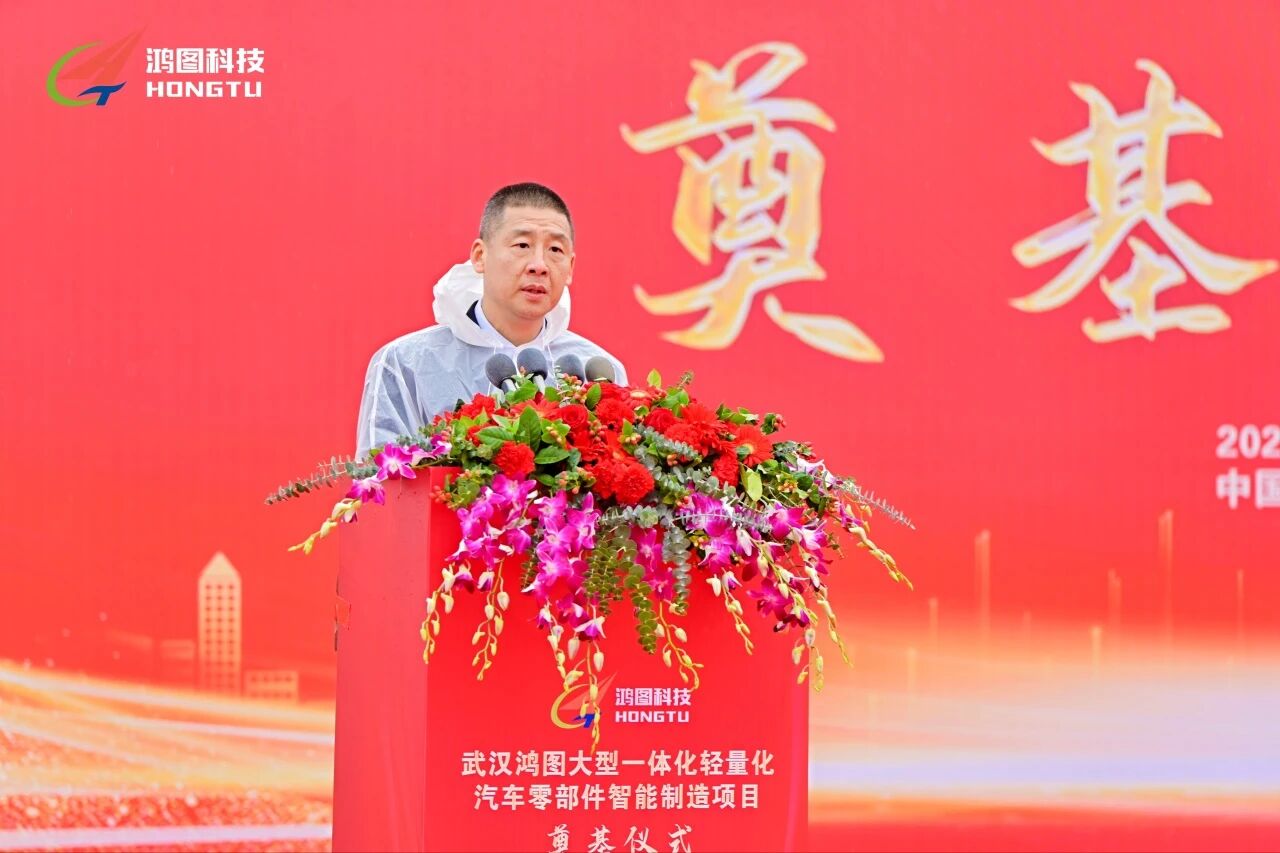 廣東鴻圖黨委書記、董事長劉衛(wèi)東致辭 廣東鴻圖黨委書記、董事長劉衛(wèi)東在奠基儀式上,對(duì)各級(jí)政府及合作伙伴的支持表示感謝。他表示,武漢是汽車工業(yè)重要戰(zhàn)略高地,十二年前鴻圖布局武漢已實(shí)現(xiàn)深度融合;此次二期項(xiàng)目是響應(yīng)國家“雙碳”戰(zhàn)略、順應(yīng)汽車產(chǎn)業(yè)發(fā)展趨勢(shì)的關(guān)鍵舉措,將引入超大型一體化壓鑄裝備與核心技術(shù),把武漢基地打造為全國重要增長極,助力武漢“世界車谷”建設(shè)。
