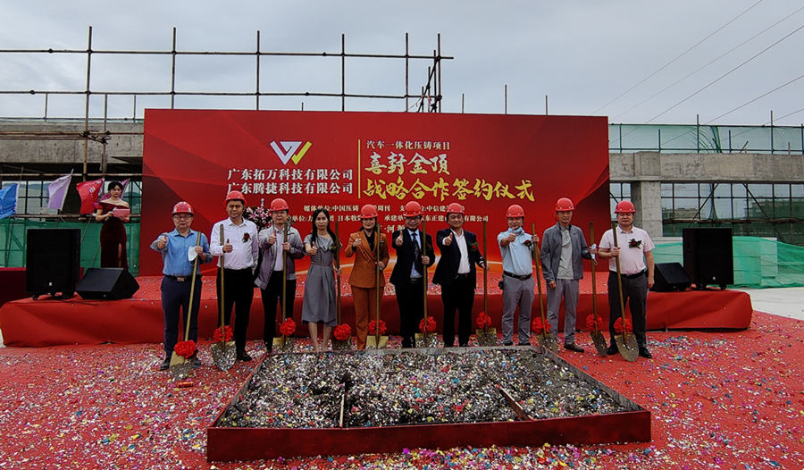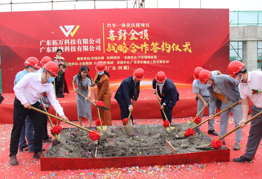 2022年11月1日上午,“廣東拓萬科技有限公司(一體化壓鑄)汽配項目封頂儀式暨廣東拓萬與力勁集團、廣東騰捷與日本牧野機床戰(zhàn)略合作簽約儀式”,在項目所在地廣東河源市東源縣仙塘鎮(zhèn)鹽東物流園舉行。據(jù)悉,經(jīng)過一年多建設的拓萬(河源)汽配項目主體建筑正式封頂,一期項目將向力勁集團采購11臺大型冷室壓鑄機。