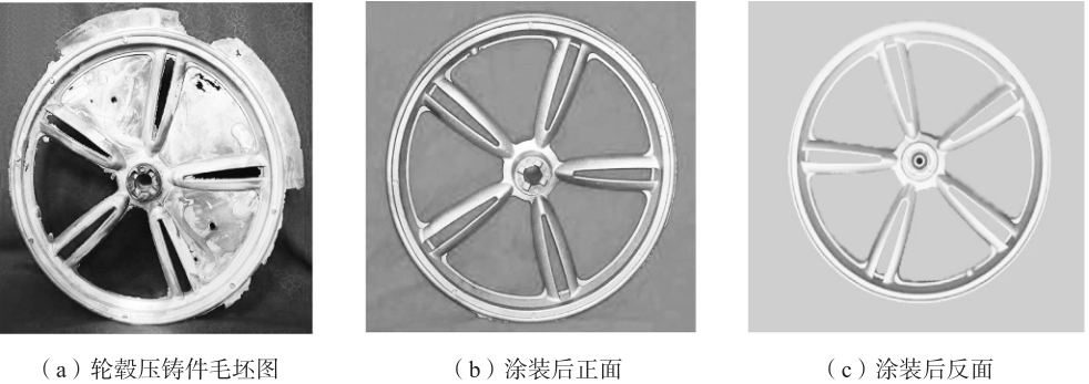 表4 信噪比均值與極差 當(dāng)工藝參數(shù)為A1B3C1時,采用ProCAST軟件進行數(shù)值模擬,得到不考慮噪聲的缺陷體積(0.398 3 cm 3 )。當(dāng)受噪聲因素影響時,缺陷的最大體積為0.436 1 cm 3 ,最小體積為0.319 9 cm 3 ,信噪比為8.211 4 dB,雖然比正交試驗表中任何一組試驗結(jié)果都大了一些,但也是信噪比值最大的,結(jié)果是一致的。 3、生產(chǎn)驗證 通過ProCAST軟件模擬結(jié)合穩(wěn)健設(shè)計方法對壓鑄工藝參數(shù)進行優(yōu)化下,得到的最佳壓鑄工藝參數(shù)為:壓射速度為0.9 m/s,鑄型溫度為260 ℃,澆注溫度為680 ℃。根據(jù)該工藝參數(shù)對鎂合金輪轂鑄件進行的大批量生產(chǎn)驗證,在實際生產(chǎn)中,壓鑄工藝參數(shù)分別取壓射速度為0.7~1.3 m/s,鑄型溫度為200~300 ℃,澆注溫度為650~710 ℃,結(jié)合生產(chǎn)效率需要,保壓時間設(shè)定為20 s。利用抗拉強度、伸長率、硬度和沖擊韌性四個力學(xué)性能指標(biāo)進行表征,生產(chǎn)實踐表明,當(dāng)壓射速度為0.8~1.0 m/s、澆注溫度為670~690 ℃、鑄型溫度為250~270 ℃時,鑄件的生產(chǎn)效率最高,力學(xué)性能最好,即品質(zhì)最好。在最佳工藝參數(shù)下得到的輪轂鑄件(圖4),從圖4a可以看出,鎂合金輪轂壓鑄件充型完整,外觀無缺陷,經(jīng)機加工后的輪轂表面光滑,加工成產(chǎn)品后對表面進行涂裝(圖4b、4c),外觀質(zhì)量美觀。最后對鎂合金輪轂鑄件進行力學(xué)性能檢測結(jié)果為:抗拉強度為227 MPa、布氏硬度為HBS71、伸長率為10.7%和抗沖擊韌性為18.7×10 4 J/m 2 ,以上力學(xué)性能表明,該輪轂鑄件達到了輪轂技術(shù)標(biāo)準(zhǔn)要求,輪轂鑄件內(nèi)部無嚴(yán)重缺陷,鑄件經(jīng)過大批量生產(chǎn)后,產(chǎn)品質(zhì)量穩(wěn)定,表明上述模擬結(jié)果準(zhǔn)確。