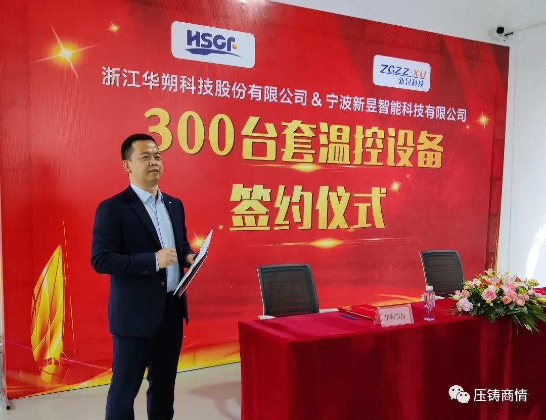 ![]() 2023年3月15日上午,浙江華朔科技股份有限公司(簡稱“華朔股份”)與寧波新昱智能科技有限公司(簡稱“新昱科技”)戰(zhàn)略合作暨300臺套壓鑄溫控設備采購簽約儀式,在寧波北侖新昱科技生產基地舉行。