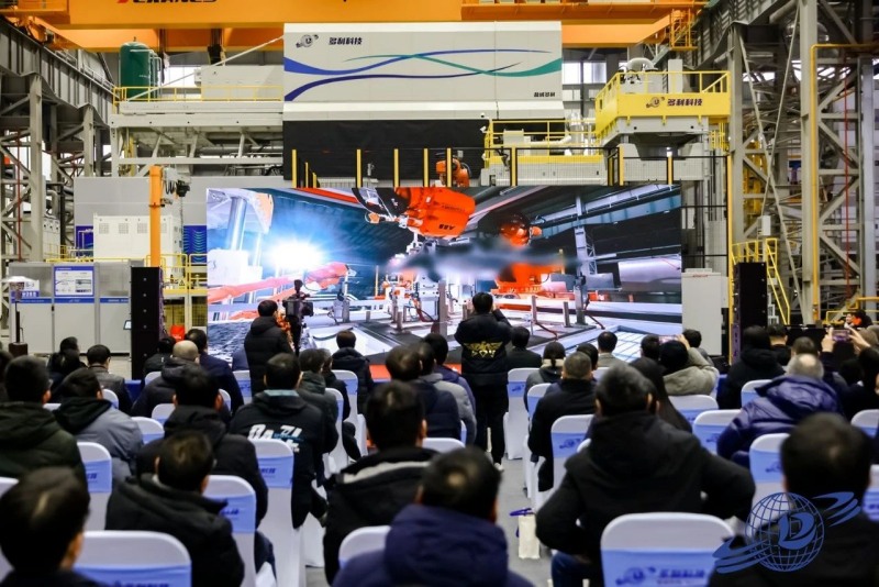 致辭結束后,多利科技鹽城公司總經理孫建新收到鄧麗琴董事長指令并啟動遙控按鍵,播放9200T壓鑄單元生產短視頻。隨后,與會主要領導上臺共同為兩件9200T一體化壓鑄件產品掀開紅蓋頭。至此,投產儀式圓滿結束。