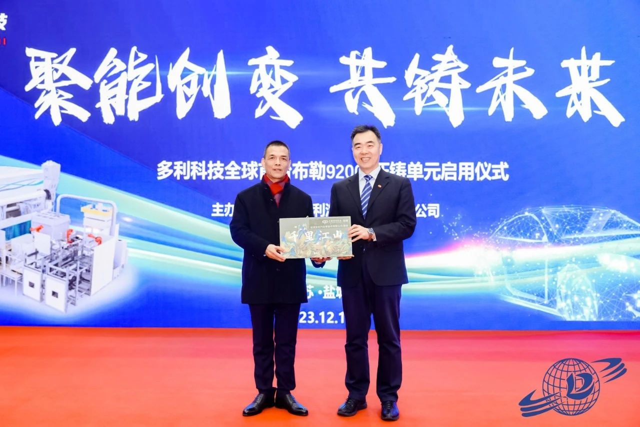 多利鹽城主廠區及產品展示 出席啟用儀式的領導和嘉賓還有:鹽城經濟開發區黨工委委員、新能源汽車產業園區黨組書記兼主任鄧既明先生,鹽城經開區各部門主要負責人,常州金壇開發區黨委副書記羅祎、科協主席束鳴東以及多個部門主要負責人,江蘇省鑄造協會秘書長龔四清先生、副秘書長楊慧女士,多利科技管理層,多利鹽城公司員工代表,布勒壓鑄中國管理層,客戶、供應商代表,中鑄科技、《壓鑄周刊》專業媒體記者等。