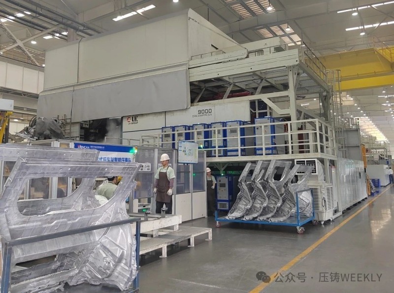 力勁集團(tuán)與文燦集團(tuán)聯(lián)合開(kāi)發(fā)的9800T超級(jí)壓鑄島 本次文燦集團(tuán)萬(wàn)噸級(jí)壓鑄島的順利投產(chǎn),離不開(kāi)兩家重要合作伙伴——力勁集團(tuán)和上海發(fā)那科的大力支持。文燦集團(tuán)和力勁集團(tuán)本次聯(lián)合開(kāi)發(fā)了最新一代的萬(wàn)噸級(jí)兩板式超級(jí)壓鑄機(jī),這是文燦和力勁合作的第三代超大型壓鑄機(jī),壓鑄節(jié)拍更快、壓鑄穩(wěn)定性更高。此外,還有3臺(tái)萬(wàn)噸級(jí)以上的超級(jí)壓鑄機(jī)將在今年年底之前全部安裝調(diào)試到位,這一數(shù)量在全球范圍內(nèi)獨(dú)一無(wú)二,量產(chǎn)供貨能力每年超過(guò)100萬(wàn)件大鑄件。