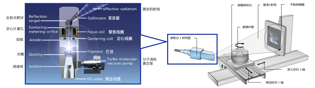 X射線穿透物體時,由于物體不同部位的密度和厚度差異,射線能量會有不同程度的衰減。 CT就是利用該現象,將物體放在高精度轉臺上做360°旋轉,每轉動一個特定角度,探測器就會將實時接受到X射線能量轉變為光電信號,經后續處理就可以得到物體在該角度下的實時灰度圖像。