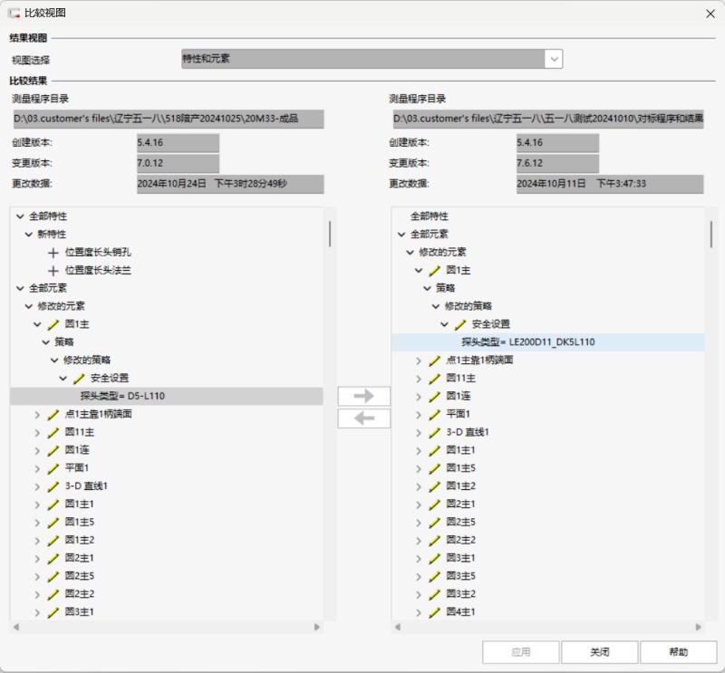 功能4比較測(cè)量程序(2019版本新增,2020版本優(yōu)化) 功能場(chǎng)景 不少客戶擁有不止一臺(tái)蔡司三坐標(biāo),測(cè)量程序的管理是質(zhì)量管理工作上非常重要的一環(huán),為了統(tǒng)一程序中的參數(shù)設(shè)置,以前需要分別打開(kāi)單獨(dú)的程序然后記錄更改項(xiàng),或者將兩臺(tái)工作站放到一起,兩邊同時(shí)打開(kāi)程序做比對(duì),現(xiàn)在可以使用比較測(cè)量程序這個(gè)功能,在一個(gè)工作站中實(shí)現(xiàn)兩個(gè)程序的比較,不但可以檢查出程序中特性的數(shù)量還能將元素測(cè)量策略的差異標(biāo)記出來(lái)。 功能價(jià)值 不必浪費(fèi)過(guò)多的精力在查找程序的差異上面,發(fā)現(xiàn)差異也可以在比較視圖窗口下一鍵同步程序,這在質(zhì)量管理上是非常實(shí)用的功能。