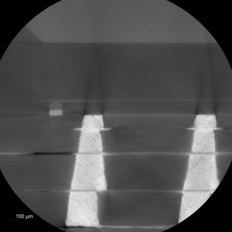 ▲在連接墊上未發現任何裂紋。但傳感器內部有許多空洞。