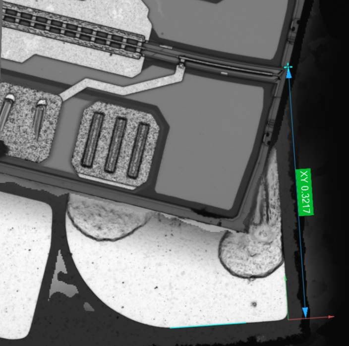 ▲蔡司解決方案:VersaXRM 615 ZEISS Versa 3D X射線顯微鏡(XRM)可為各種材料和工作環境提供卓越的三維圖像質量和數據。該系統具有基于同步加速器口徑光學器件的兩級放大倍率以及RaaD™(大工作距離下的高分辨率)技術,在較長的工作距離下依然保持優異的分辨率。無損成像技術可以保持并延長樣品的使用時間,從而滿足四維和原位研究需求。 03芯片光波導距離測量