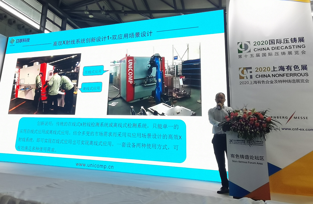 在日聯科技展臺,依科視朗展示其ADR技術 近日,“2020國際壓鑄展”在上海新國際博覽中心落下帷幕。國內知名的X射線智能檢測系統集成商—日聯科技,攜UNC系列X射線實時成像檢測設備和工業CT檢測設備參展。依科視朗YXLON則作為公司的戰略合作伙伴聯合參展,現場展示全自動檢測識別軟件(ADR)。基于日聯科技在X射線檢測方面的領先技術及成果,其“高效X射線系統”榮獲主辦方頒發的“壓鑄行業年度創新技術”證書。 重慶日聯科技有限公司銷售總監牛桂英女士介紹說:“日聯科技成立于2002年,在重慶、深圳、無錫設有三個研發和生產基地,在西安成立一家軟件公司,在全國各地設立營銷服務中心,以及在全球主要經濟體發展代理商。公司X射線智能檢測設備,主要應用于工業無損檢測、公共安全、微聚焦射線檢測等行業及領域。”