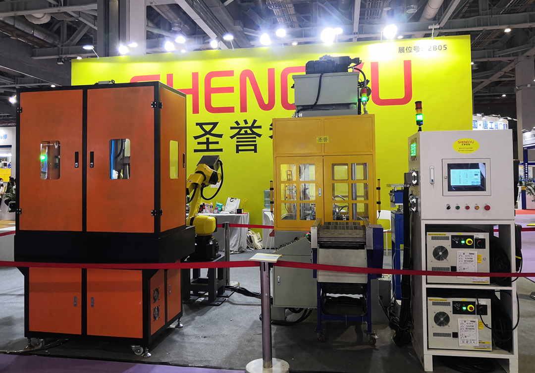![]() 圣譽智能參展團隊,中為公司董事長劉繼文先生、左二為總經理羅圣科先生 2021年5月28日,為期三天的“2021中國國際鑄博會暨壓鑄展”,在國家會展中心(上海)閉幕。壓鑄及后道加工自動化設備及整體解決方案提供商--廣東圣譽智能科技有限公司(“圣譽智能”)首次參加華東地區專業展會。此次展會,圣譽智能現場展示了壓鑄后道加工自動化線及解決方案。 據介紹,圣譽智能此次展示壓鑄后處理解決方案,由多工作臺鉆孔攻牙機、油壓切邊機、兩臺六軸關節機器人組成。該后道處理自動化系統,執行取件、水冷、鉆孔、攻牙、精切等工序,完工即可出鑄件成品。多工作臺鉆孔攻牙機、油壓切邊機均為圣譽智能自行研制,可實現中小壓鑄件的批量化、高效率的后處理生產。