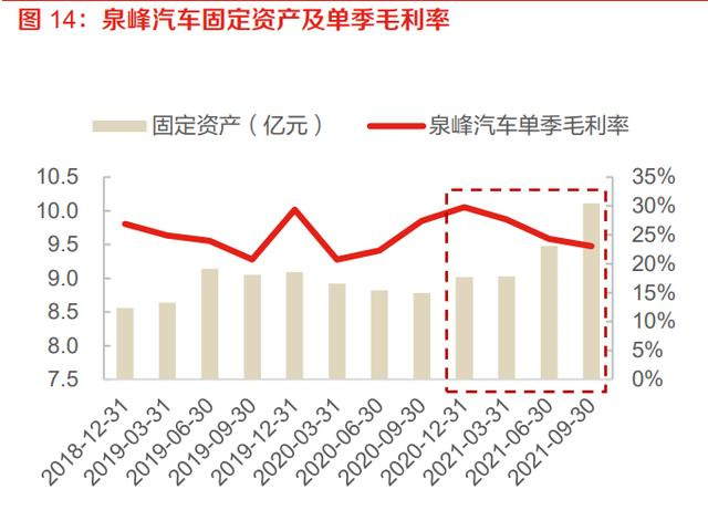 3.2 行業(yè)屬于重資產(chǎn)行業(yè),盈利能力有一定周期性特征 輕量化壓鑄行業(yè)是重資產(chǎn)行業(yè),項(xiàng)目開發(fā)前期需要投入土地、設(shè)備、廠房等固定資產(chǎn),資本支出 增加,項(xiàng)目建設(shè)過程中因?yàn)楣潭ㄙY產(chǎn)折舊增加等因素拖累整體盈利能力,隨著項(xiàng)目投產(chǎn)完成并逐 步釋放新增產(chǎn)能,資本支出及折舊攤銷減少,產(chǎn)能利用率提升,盈利能力提升。 以愛柯迪、泉峰汽車進(jìn)行比較分析。 2017Q3-2018Q3 愛柯迪投入較多資金用于購買固定資產(chǎn),部分導(dǎo)致毛利率下滑。2017 年底愛柯 迪上市后募集資金用于建設(shè)精密壓鑄件、雨刮系統(tǒng)部件、精密金屬加工件等多個(gè)項(xiàng)目,計(jì)劃投入 資金超 15 億元,導(dǎo)致固定資產(chǎn)及折舊快速提升,2016Q1-2017Q2 平均單季度購建固定資產(chǎn)、無 形資產(chǎn)和其他長期資產(chǎn)支付現(xiàn)金 1.13 億元,2017Q3-2018Q3 平均單季度支付現(xiàn)金 1.51 億元,較 擴(kuò)產(chǎn)前增長 0.38 億元;2018 年三季度末固定資產(chǎn)增長至 13.27 億元,同比 2017 年三季度末提升 48.6%。固定資產(chǎn)及折舊增加、汽車行業(yè)景氣度下滑等綜合導(dǎo)致2018年三季度毛利率下滑至33%, 較 2017 年四季度大幅下降 7.3 個(gè)百分點(diǎn)。 2020 年中愛柯迪再次擴(kuò)產(chǎn)建設(shè)輕量化壓鑄件項(xiàng)目,短期盈利承壓,新項(xiàng)目完成后有望促進(jìn)盈利提 升。2020 年 3 月公司公告將在柳州建設(shè)汽車輕量化鋁合金精密壓鑄項(xiàng)目,總投資約 5 億元,同時(shí) 還將在寧波投資建設(shè)產(chǎn)業(yè)園區(qū),總投資約 10 億元,2020Q2-2021Q3 平均單季購建固定資產(chǎn)、無 形資產(chǎn)及其他長期資產(chǎn)支付現(xiàn)金 1.82 億元,較 2019 年平均單季支付金額增長 0.86 億元;2021 年三季度末固定資產(chǎn) 17.27 億元,較 2020 一季度末擴(kuò)產(chǎn)前提升 25.6%,2021 年三季度公司毛利 率 24.8%,同比下降 6 個(gè)百分點(diǎn),系受到固定資產(chǎn)及相關(guān)折舊攤銷增加、會(huì)計(jì)準(zhǔn)則調(diào)整等因素影 響。根據(jù)公司前期項(xiàng)目建設(shè)計(jì)劃,預(yù)計(jì)2022年輕量化精密壓鑄件項(xiàng)目將建設(shè)完成并逐步實(shí)現(xiàn)產(chǎn)能 爬坡,將有效滿足前期在手訂單需求,產(chǎn)能利用率提升,有望提升 2022 年整體盈利能力。 從資本支出和毛利率的關(guān)系看,資本支出增加導(dǎo)致毛利率下滑,擴(kuò)產(chǎn)完成后產(chǎn)能利用率將提升, 資本支出對毛利率的不利因素將減小。2018 年的資本支出達(dá)到 6.56 億元,處于 2015 年后資本支 出最高位,疊加 2018 年汽車行業(yè)景氣度下滑等因素,綜合導(dǎo)致愛柯迪毛利率跌至 34.23%,同比 下降 5.8個(gè)百分點(diǎn),2018年后毛利率下滑系行業(yè)景氣度回落。2022年隨著柳州輕量化壓鑄件項(xiàng)目 建設(shè)完成,預(yù)計(jì)公司壓鑄件產(chǎn)品逐步放量,資本支出對毛利率的不利因素減小。 2020 年泉峰汽車新項(xiàng)目擴(kuò)產(chǎn),固定資產(chǎn)折舊增長并拖累盈利。根據(jù) 2020 年 10 月公告,泉峰汽車 將在馬鞍山建設(shè)汽車零部件智能制造項(xiàng)目,項(xiàng)目總投資額 20.5 億元,2020Q4-2021Q3 平均單季 購建固定資產(chǎn)、無形資產(chǎn)和其他長期資產(chǎn)支付現(xiàn)金 1.47 億元,2019Q1-2020Q3 單季平均支付金 額僅 0.22 億元;公司固定資產(chǎn)從 2020 年三季度末的 8.78 億元提升至 2021 年三季度末的 10.11 億元,同比增長 15.1%,受固定資產(chǎn)及折舊增長、會(huì)計(jì)準(zhǔn)則調(diào)整等影響,2021Q3 毛利率 23.1%, 同比下降 4.4 個(gè)百分點(diǎn)。 據(jù)公告,由于輕量化壓鑄行業(yè)需求旺盛,公司投資的馬鞍山汽車零部件項(xiàng)目正在趕工加快進(jìn)度, 首批壓鑄產(chǎn)能將于 2021 年 10 月底至 11 月初完成廠房建設(shè),并逐步導(dǎo)入量產(chǎn)階段;此外預(yù)計(jì)匈牙利建設(shè)項(xiàng)目 2022 年三季度也將開始逐步量產(chǎn),2022 年馬鞍山、匈牙利等地工廠產(chǎn)能均有望釋 放,有效解決目前壓鑄件產(chǎn)能瓶頸。