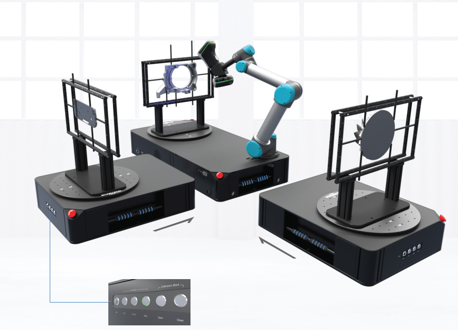 輕松部署 無限拓展 AM-DESK平臺主體僅重75kg,僅需1㎡占地面積,提供110-220V市電,5分鐘內便可輕松構建自動化檢測工位;搭配移動式集成底座,外形更緊湊輕便,可隨心布置;支持多個外接變位機,可組網,即插即用,自動切換運行路徑,進一步提升測量效率;支持不同品牌型號協作機器人,可搭載SCANTECH全系列三維掃描儀。