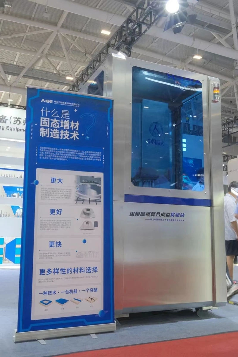 在本屆展會上,AEE首次展示了在增材制造領域的創新技術成果——固相摩擦復合成型試驗站。徐萌先生介紹說,該裝備由AEE與澳門發展及質量研究所(IDQ)聯合研制,是增材制造領域的最新技術。這臺兼具攪拌摩擦和增材制造技術復合型裝備,是國內首臺在國家工信部備案的攪拌摩擦增材裝備。該新技術目前主要應用在航天航空以及各高校科研院所的技術研發等方面。