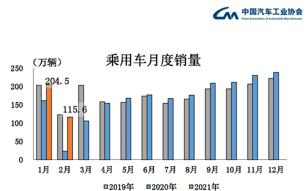 受基數(shù)較低影響乘用車(chē)產(chǎn)銷(xiāo)同比大幅增長(zhǎng) 2月,乘用車(chē)產(chǎn)銷(xiāo)分別完成116.2萬(wàn)輛和115.6萬(wàn)輛,環(huán)比分別下降39.1%和43.5%,同比分別增長(zhǎng)4.8倍和4.1倍。1-2月,乘用車(chē)產(chǎn)銷(xiāo)分別完成307.2萬(wàn)輛和320.1萬(wàn)輛,同比分別增長(zhǎng)87%和74%。