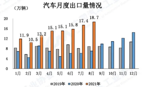 汽車出口再創新高 8月,汽車企業出口18.7萬輛,環比增長7.5%,同比增長1.6倍。1-8月,汽車企業出口118.9萬輛,同比增長1.3倍。